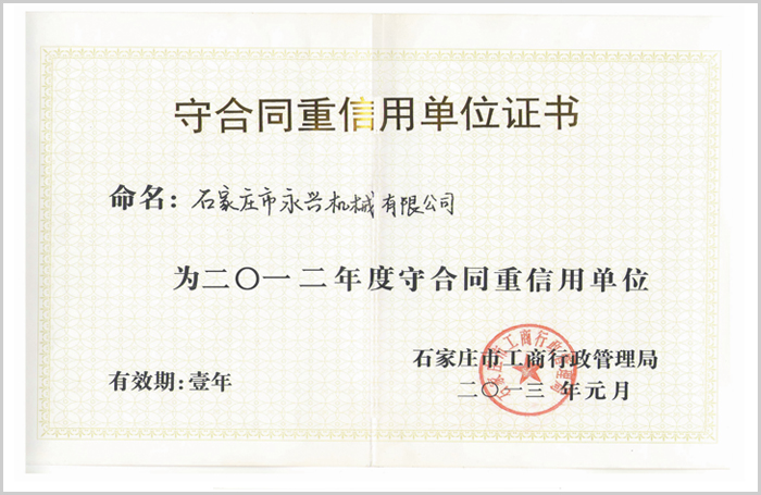 守合同重信用單位證書